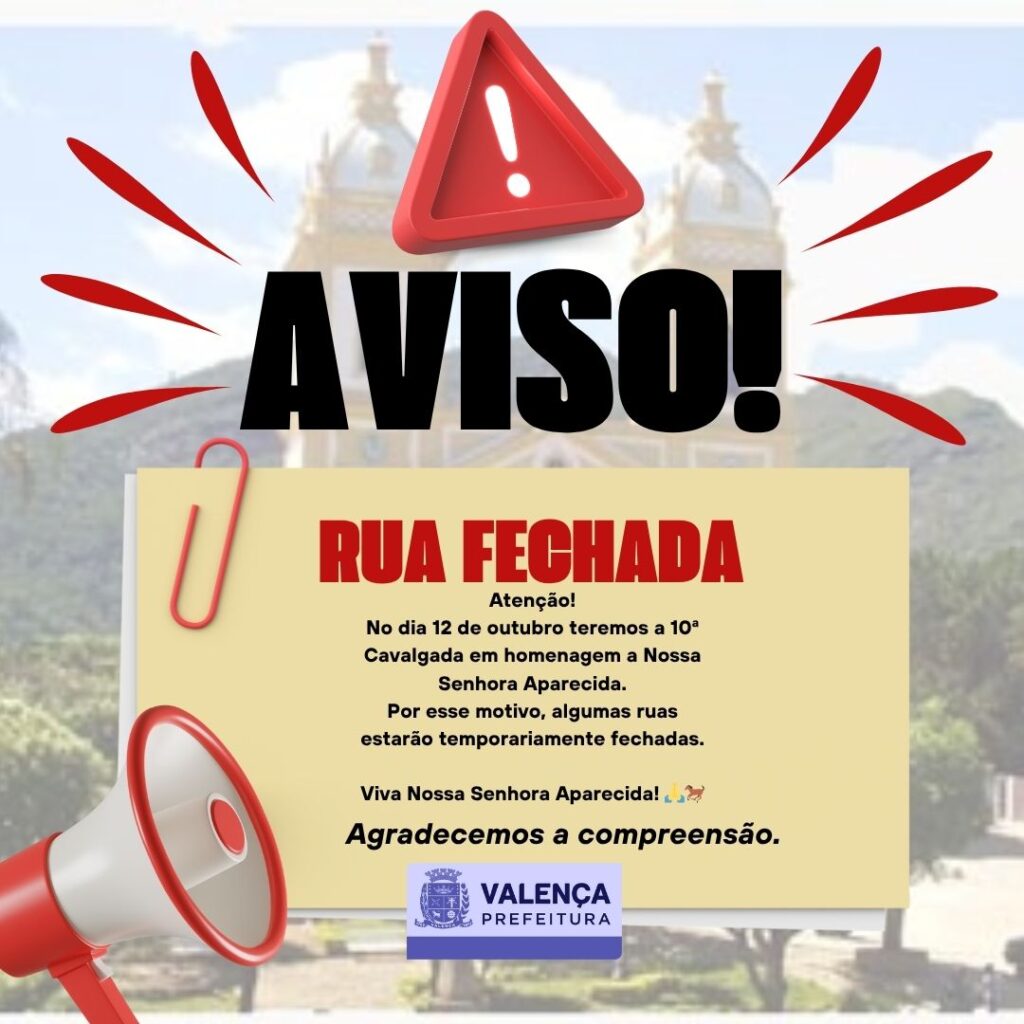 Algumas ruas do centro de Valença serão fechadas temporariamente, com saída da Praça Emília Jannuzzi e trajeto passando por pontos como Rua Antônio Augusto Siqueira, Rua Carlos Luiz Jannuzzi e Serra da Glória. Fique atento e programe seu percurso.