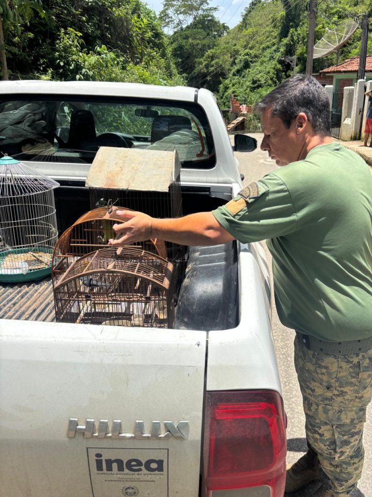 A Prefeitura de Valença / Governo Presente, por meio da Secretaria Municipal de Meio Ambiente, realizou uma ação da Guarda Municipal Ambiental na localidade da Serra da Glória após denúncia registrada na Ouvidoria Municipal. Durante a diligência, autorizada pela proprietária do imóvel, foram localizadas aves silvestres mantidas irregularmente, entre elas um papagaio, um canário e uma cigarra-bambu. Em residência vizinha, foi encontrada ainda uma maritaca.