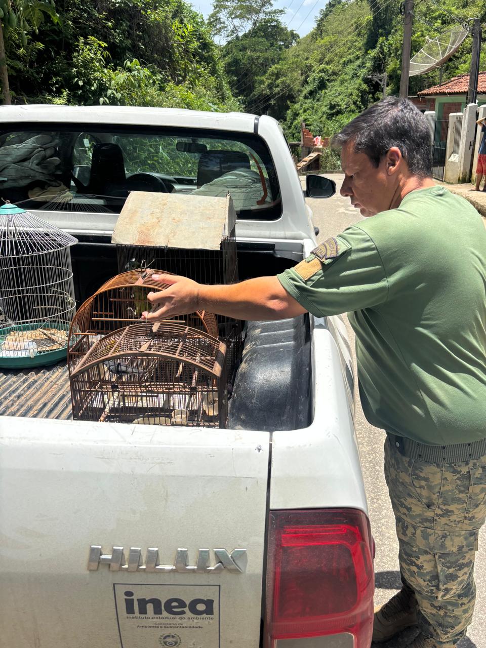 A Prefeitura de Valença / Governo Presente, por meio da Secretaria Municipal de Meio Ambiente, realizou uma ação da Guarda Municipal Ambiental na localidade da Serra da Glória após denúncia registrada na Ouvidoria Municipal. Durante a diligência, autorizada pela proprietária do imóvel, foram localizadas aves silvestres mantidas irregularmente, entre elas um papagaio, um canário e uma cigarra-bambu. Em residência vizinha, foi encontrada ainda uma maritaca.