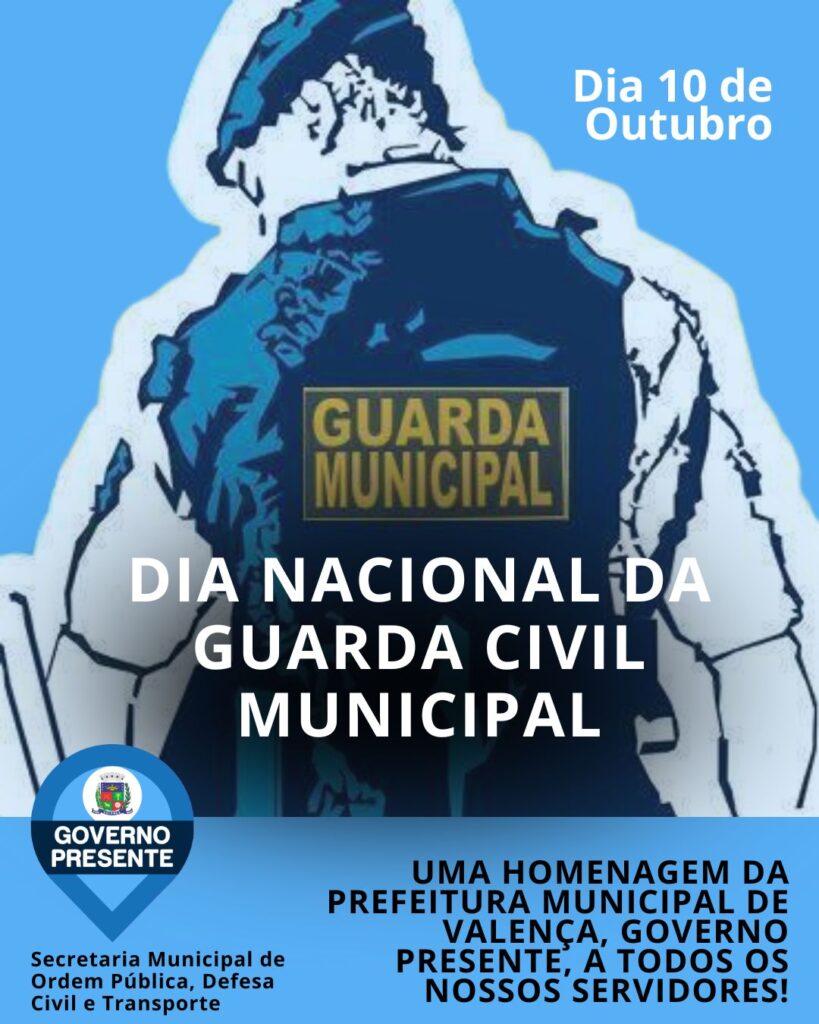 Hoje, dia 10 de outubro, a Prefeitura de Valença / Governo Presente presta homenagem a todos os profissionais da Guarda Civil Municipal. A data celebra os agentes que trabalham diariamente pela segurança e proteção da população, garantindo a ordem nas ruas, praças e equipamentos públicos.